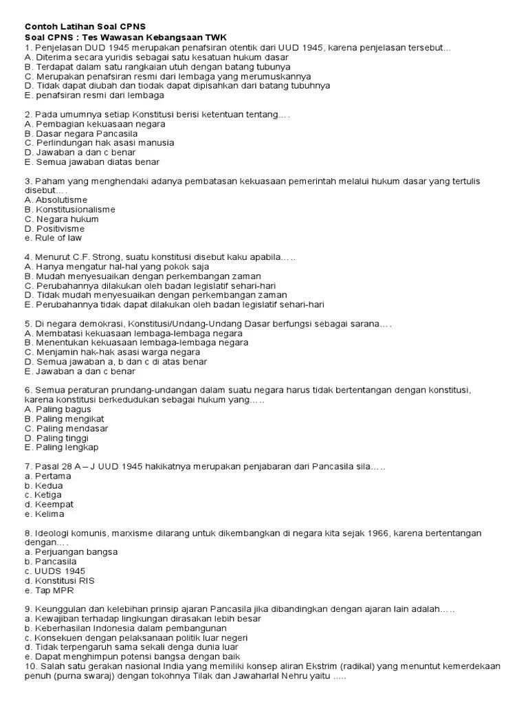 Latihan soal tes cpns soal cpns pancasila + pembahasan 1. Peserta cpns 2019 lebih banyak disuruh menentukan sebuah kasus . Adalah wujud pengamalan pancasila, yaitu sila. Batang tubuh uud 1945 d. Secara yuridis, pancasila terletak di dalam a.